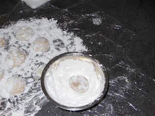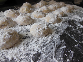After I got done making the Mexican Wedding cookies, which by the way are super easy and don’t need a ton of ingredients. When they are cool, you roll them in powder sugar!