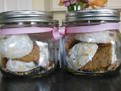 I cut the peanut butter cookies in fours, one they fit easier in the jars and I could space them apart to make the jar look fuller.