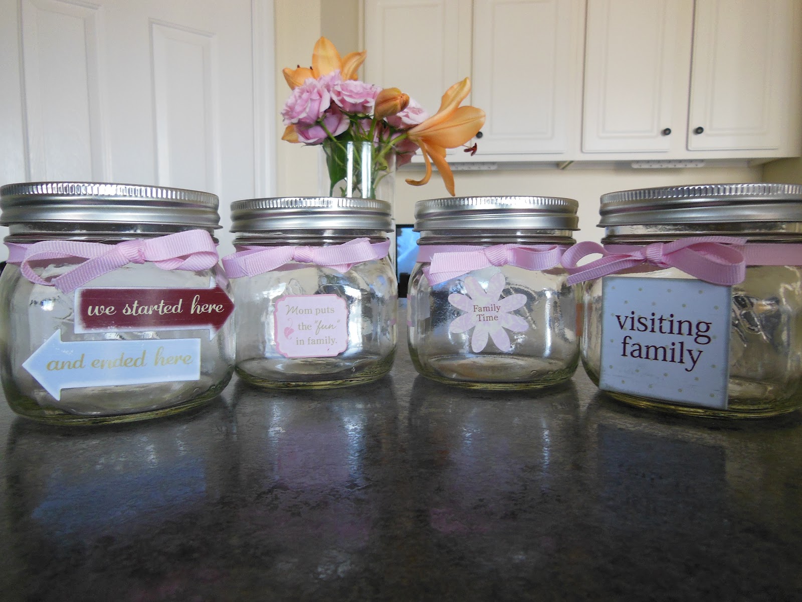 The jars are done! Some ribbon and bows and they look just a little bit nicer.