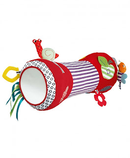 While they are new to me, I first spotted them at Babies R Us, while making my registry. The tummy time toy is just amazing. It was bigger then I had expected, and really full of fun, bright colors for when they are just starting to see all the wonders of colors to come. The toy helps promote baby to lift head and strengthen their arm and chest muscles while trying to play with all the fun things on it.