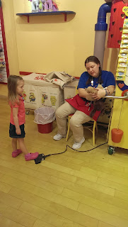 She loves her dog to pieces and no other animal, even a brand new one can compare. So on our most recent trip we brought “doggy” in for a refresher. Did you know if you get a hole or just want to refresh the stuffing, you can bring the animal in for free. Soon we meet a very kind, helpful employee that walked us through the process. While we were not buying a new animal. She got to experience it all over again but still have the same doggy she loves to much!