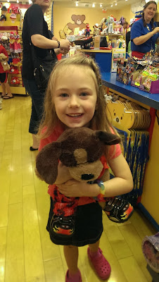 My 5 year old daughter, Natalia asked to go to Build-A-Bear Workshop and buy some clothing for her doggy for her birthday treat! We usually reward her on occasion with an outfit from Build A Bear and she has come to really enjoy going to the store and having the option of picking from so many things. My daughter gets to feel like she is really choosing something all on her own without hearing “no” multiple times because the items range in price from 2.00 and up so I don’t have to worry about her picking something out that is not in the budget